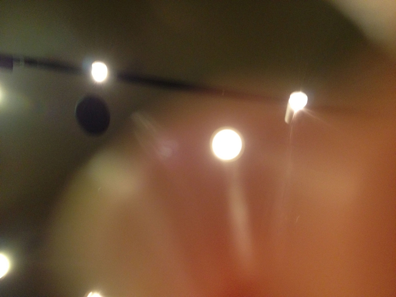 本物の夜光虫はこんな感じでは無いですが、深海にゆらめく発光生物みたいです。スタバの天井を撮ったようです。