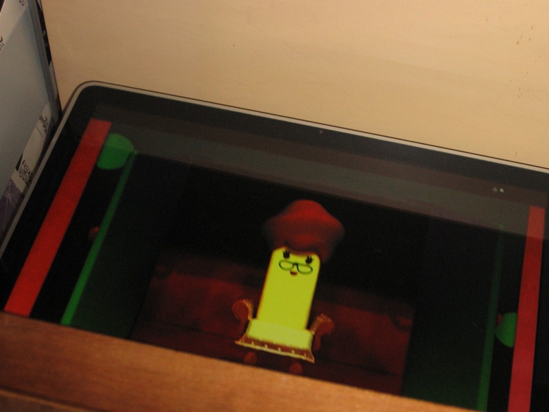 たぶん、パソコンで子ども向けテレビ番組を見ているときに撮ったんでしょうなあ。机の下から上向きに撮ってます。大人では想像もつかない、子どもの目線の光景は時にハッとさせられるものです。