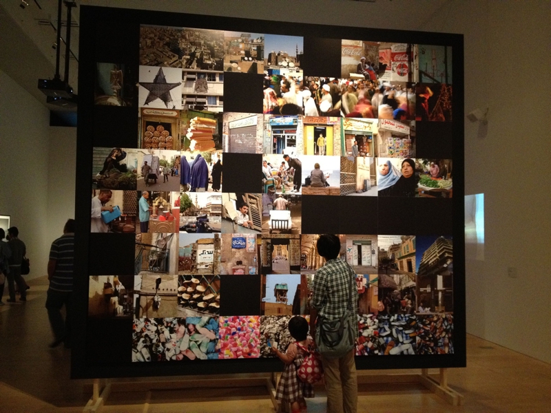 壁一面に貼られた、カイロの街の写真。街中を散歩しているような気分になります。雑踏、店の商品、人々・・・写真でヨメとチビが眺めてますけど、チビは「何これー母さん」と言いながら興味津々な様子。