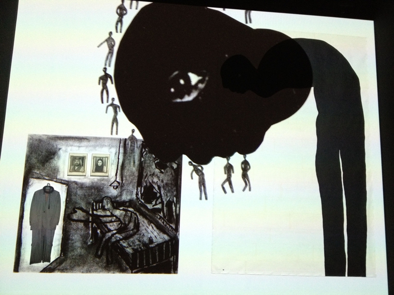 これは本当に息を飲むほど、美しい作品でした。映像作品なのですが、右の人と左の家の中をベースにいろいろ絵が描き込まれ、アニメーションのようにどんどん変化していく様は目を見張るものがありました。